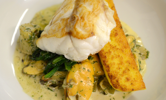 The pub is just across the bridge from Newlyn fishmarket and the menu is written up daily on a blackboard for lunch and dinner. There is a usually a meat option and vegetarians can also be catered for. The pub has been awarded a Michelin Bib Gourmand since 2013.